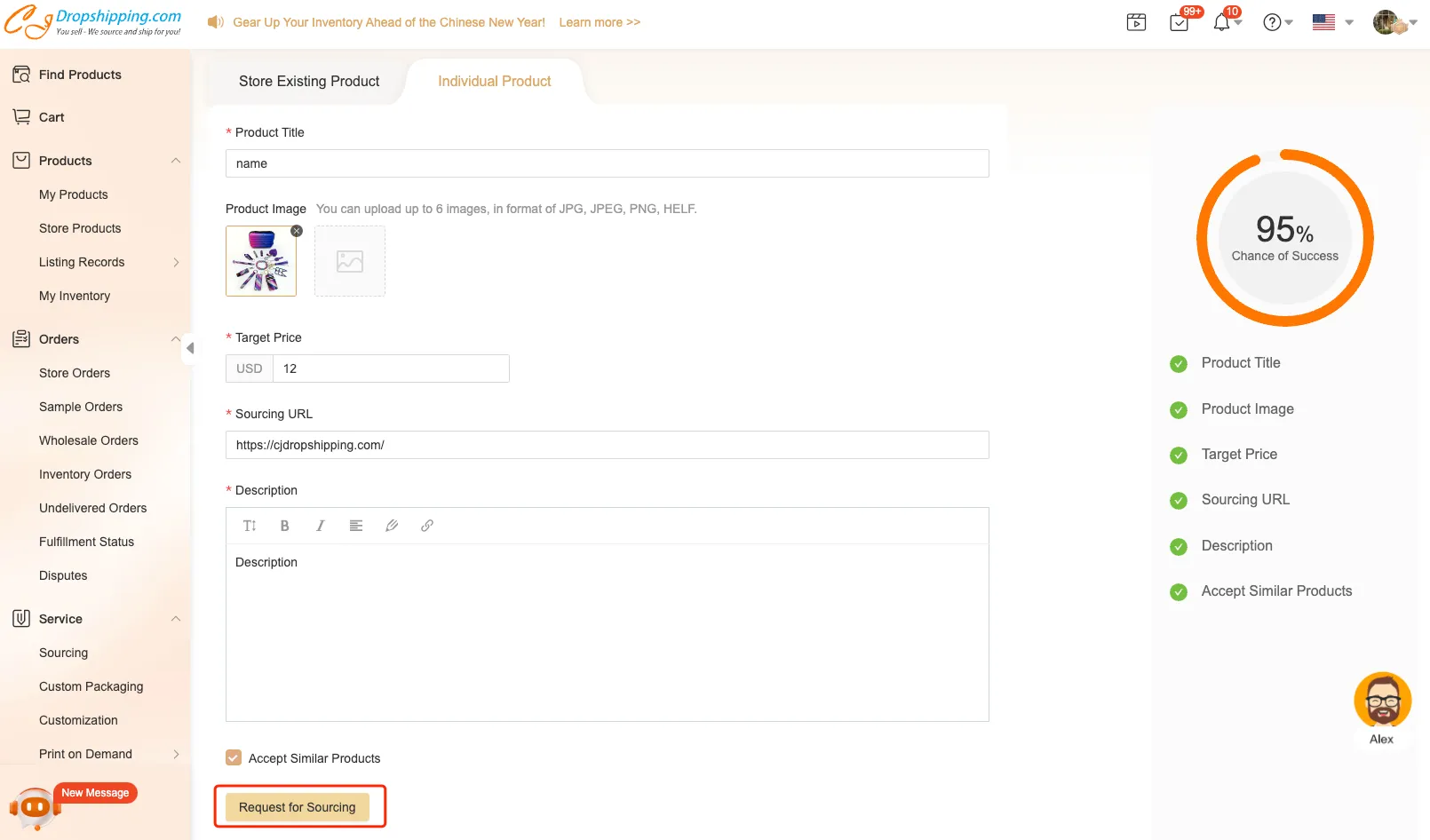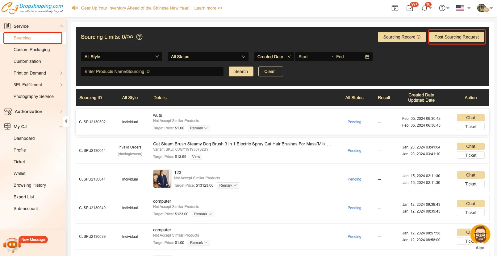 d.寻找货源。如果您在CJ上找不到所需产品,可以发布货源需求。您的需求将在2天内得到处理。