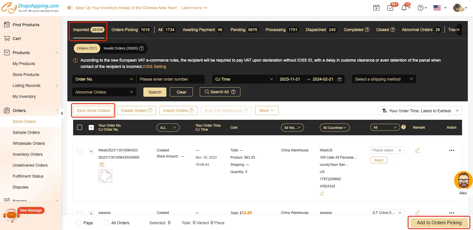您需要前往“订单”> “商店订单”,点击“同步商店订单” 按钮,将您商店的订单导入到 CJ 。