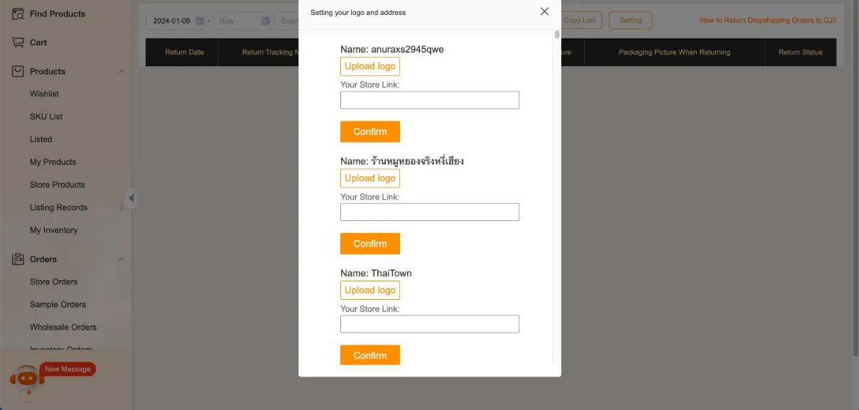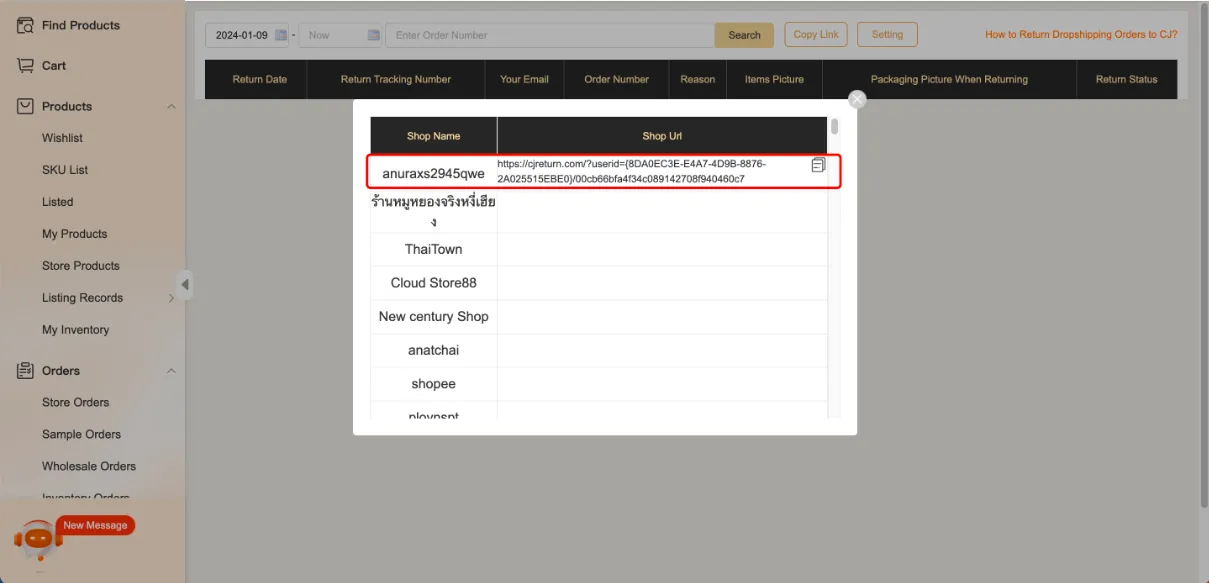 请确保您在 CJ 上拥有授权店铺,否则您将无法获得退货链接。