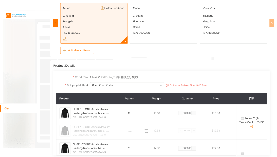 是的!CJdropshipping支持想要大量购买产品的卖家的批量购买。您可以直接通过CJ仪表板批量订购,也可以联系您的专门代理商以获得个性化服务和工厂直接定价。