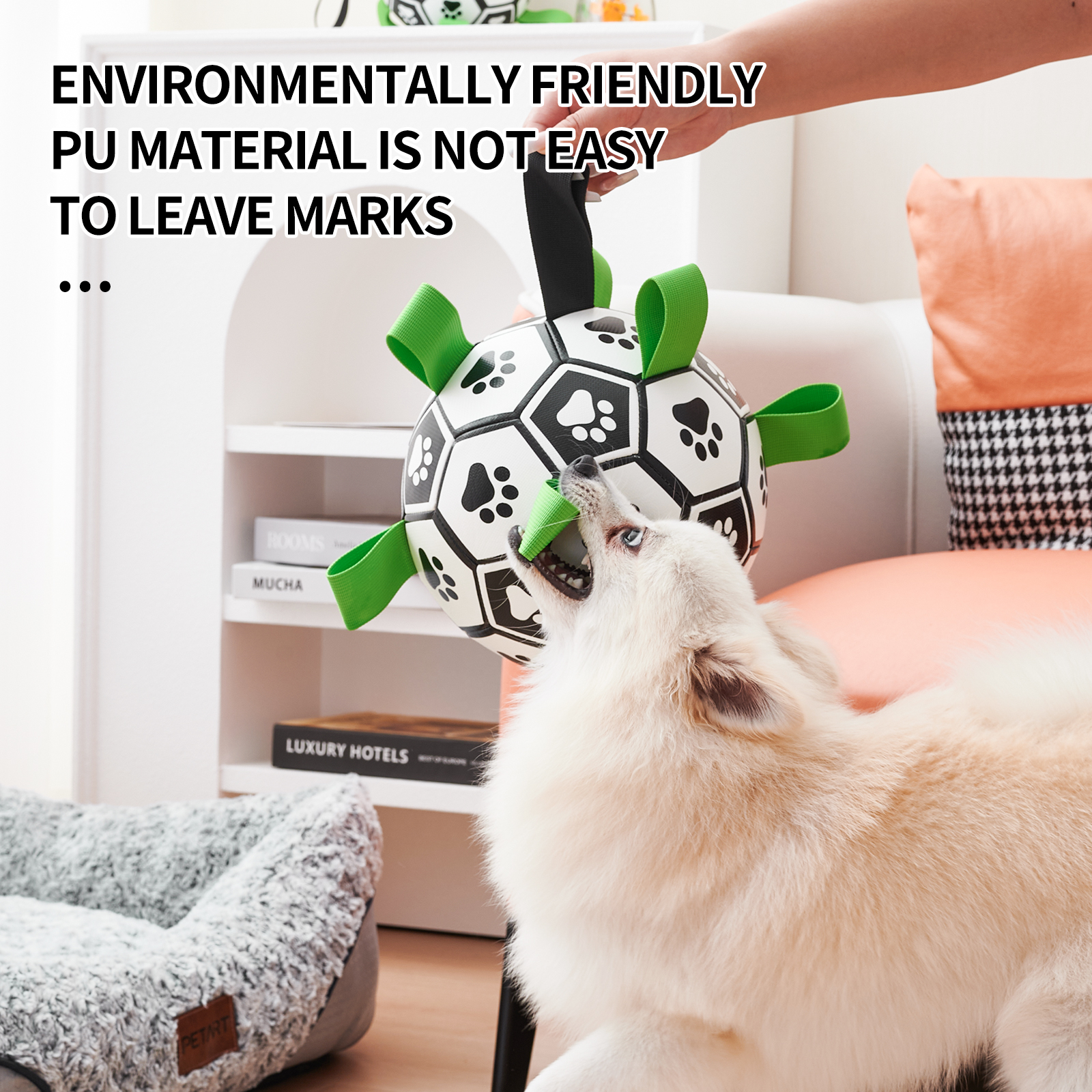 Safety is our top priority, which is why our dog football toy is made from high-quality PU material, meeting the same standards as children's toys. It's gentle on your dog's teeth and jaws, ensuring worry-free playtime for you and your pet.
